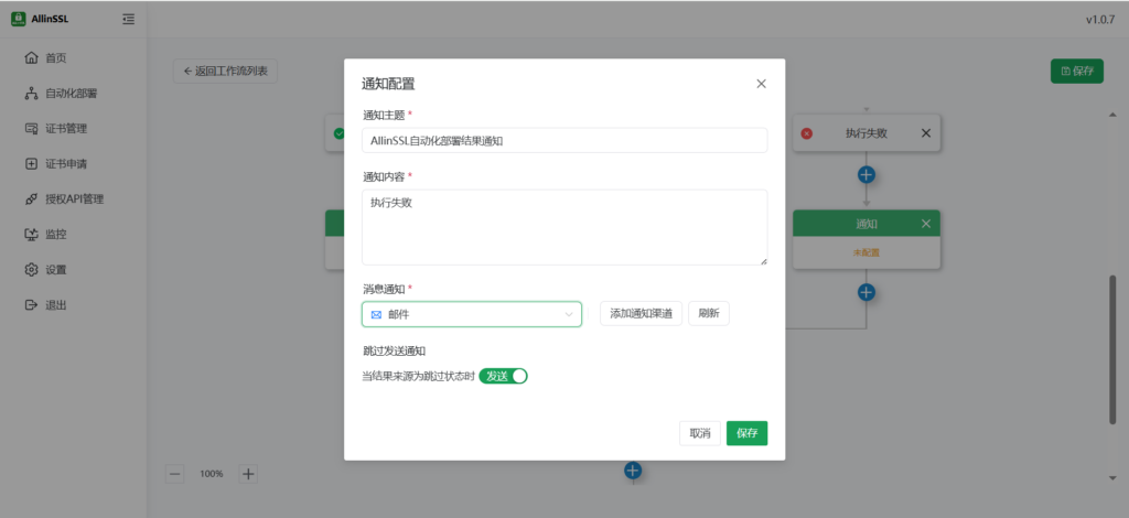 点击【通知任务】按钮配置是否需要通知