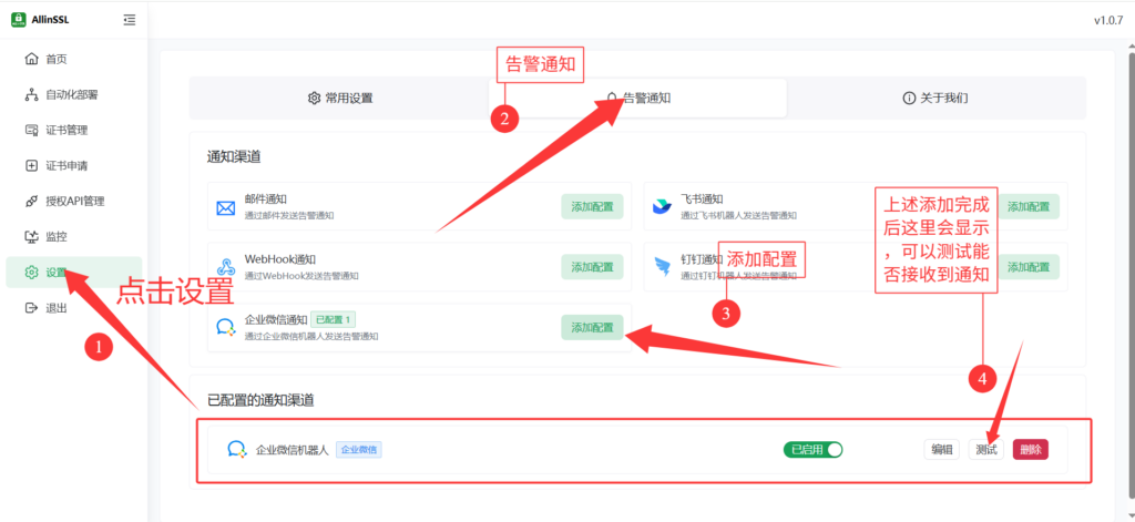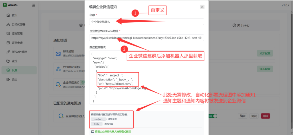 关于企微通知部署