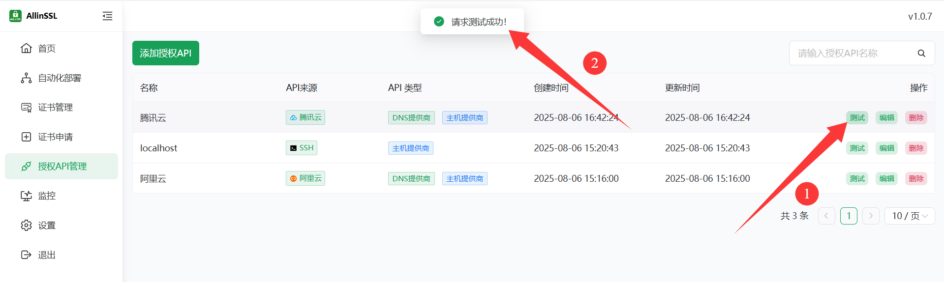 点击测试,显示“请求测试成功!”即表示成功!