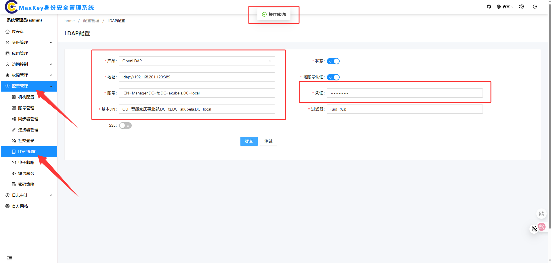 | 4 | 密码 | maxkey |