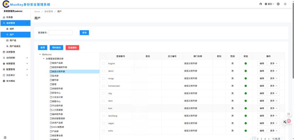- 认证多租户功能,支持集团下多企业独立管理或企业下不同部门数据隔离的,降低运维成本。