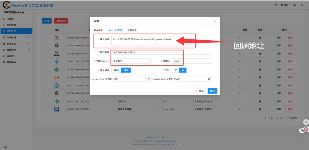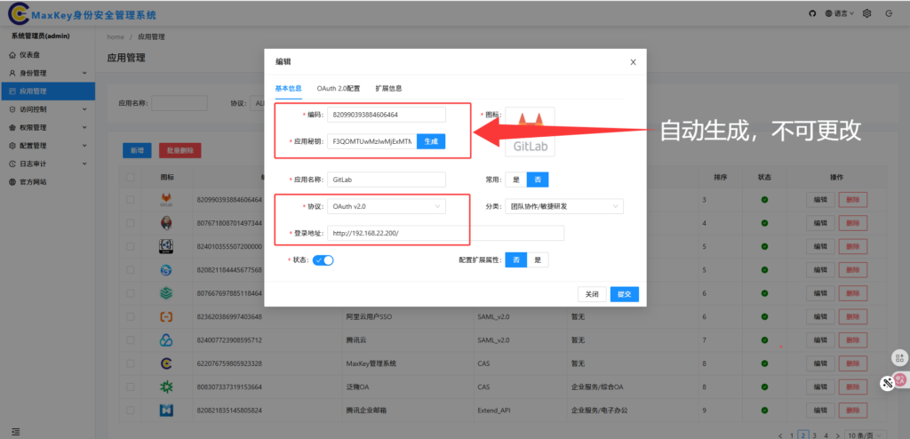 redirect_uri=http://192.168.22.200/users/auth/oauth2_generic/callback | GitLab 等待 MaxKey 回调的地址 |